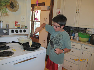 Today, Kellen tried his hand at cooking! I realized that he does not know how to cook on the stove. So now we are fixing that. Tonight, it was pancakes! He was really good at flipping and he made enough to feed us all! They were fantastic. I think because I did not have to cook them!